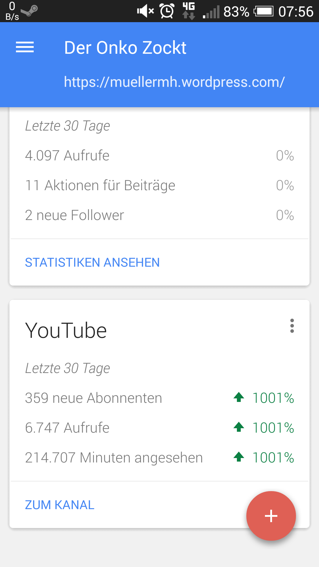 Wer von Anfang an das ganze verfolgt hat weiß das genau Heute vor einem Monat „Der Onko zockt“ gestartet wurde. Und ich bin selbst ein wenig überrascht wie „schnell“ sich so was entwickeln kann. Weiter unten ein Screenshot aus Google Business. Am schnellsten ist YouTube gewachsen und auf Platz zwei steht Google + mit den Aufrufen. Auf Platz drei ist Twitch mit knapp 1000 aufrufen 53 Followern. Auf dem 4ten Platz findet sich gefühlt Twitter wieder, die Messdaten sind echt ungenau aber mit den täglichen Stars und Retweets sowie die Statistiken als Aufrufsmedium passt das. Auf Platz 5 ist Facebook mit 38 Gefällt mir angeben. Ich bin gespannt wie sich das ganze weiter entwickelt.